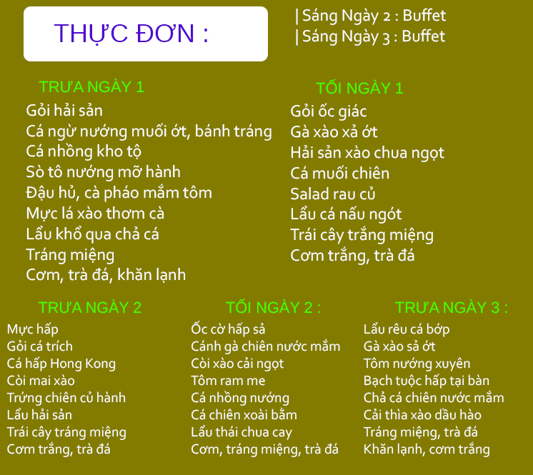| Thông tin | Áp dụng khách đoàn 120 khách |