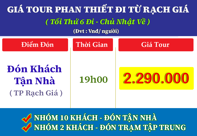 ≡  ĐÊM KHỞI HÀNH : TOUR ĐÓN KHÁCH TỪ RẠCH GIÁ -  DU LỊCH PHAN THIẾT